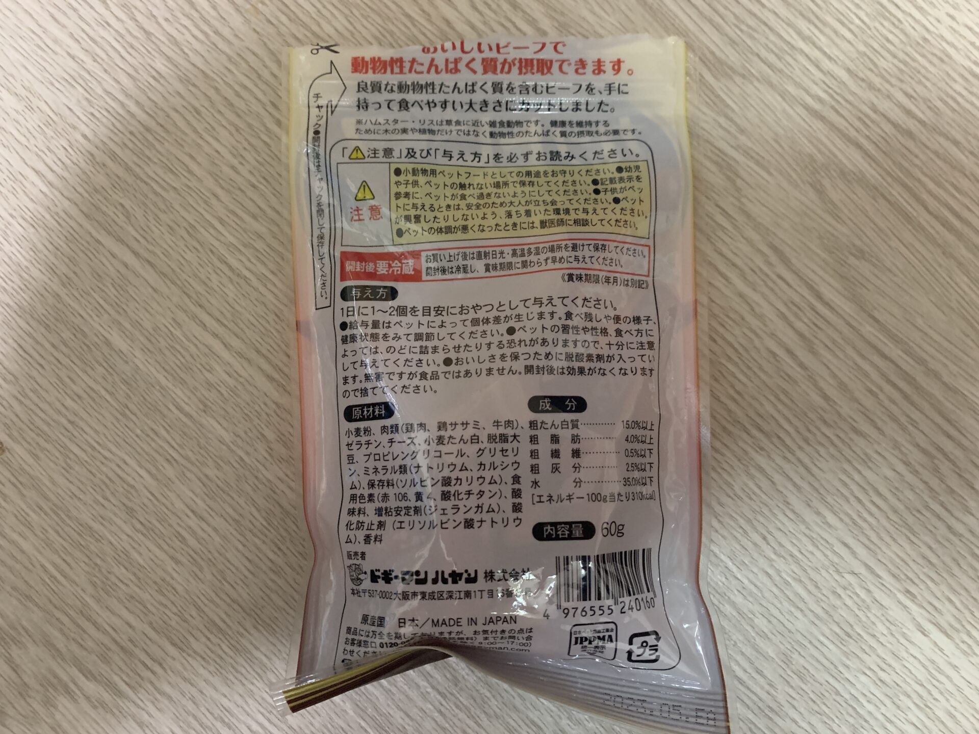 今までハムスターに与えていたのはドギーマンハヤシのカットビーフ